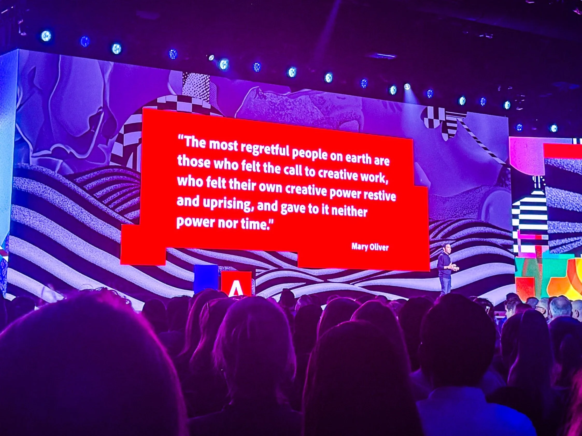 Adobe’s CEO and their “Design Evangelists” shared the latest product updates and innovations set to launch, emphasizing AI's role as a tool—creatives still drive the process, and Adobe is committed to proper crediting.